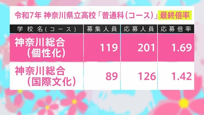 神奈川県立高校入試2025 全日制普通科 最終志願倍率は横浜翠嵐2.04倍、新城1.84倍、多摩1.67倍に【令和7年度高校受験】 TBSテレビ 2025年2月7日(金) 19:38 国内 学校別の一覧 神奈川総合(個性化)1.69倍、相模原弥栄1.38倍