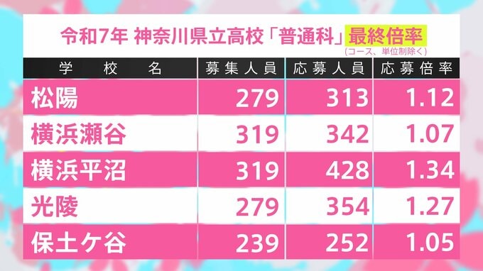 神奈川県立高校入試2025 全日制普通科 最終志願倍率は横浜翠嵐2.04倍、新城1.84倍、多摩1.67倍に【令和7年度高校受験】 TBSテレビ 2025年2月7日(金) 19:38 国内 学校別の一覧 希望ケ丘1.42倍、川和1.41倍