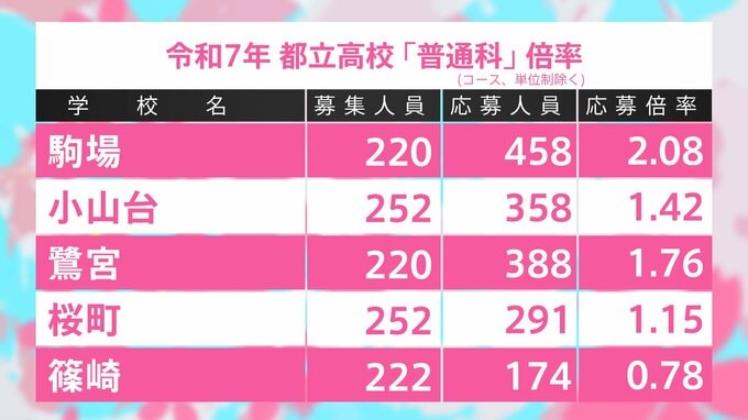 東京都立高校入試2025 全日制普通科 志願倍率は日比谷2.01倍、西1.60倍、国立1.56倍に【令和7年度高校受験】 TBSテレビ 2025年2月7日(金) 20:46 国内 学校別の一覧 神代2.09倍、駒場2.08倍