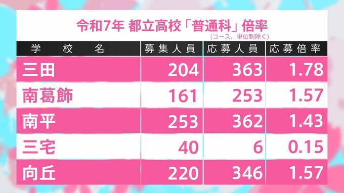 東京都立高校入試2025 全日制普通科 志願倍率は日比谷2.01倍、西1.60倍、国立1.56倍に【令和7年度高校受験】 TBSテレビ 2025年2月7日(金) 20:46 国内 学校別の一覧 三田1.78倍、雪谷1.65倍