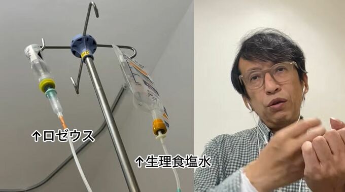 さらに三上さんは、肺がんへの抗がん剤治療について解説。生理食塩水に吐き気止めの薬剤を混ぜたものと、「ロゼウス」という抗がん剤を続けて点滴する様子を写真で紹介しました。血液検査では ”若干血液が薄くなっている” として、現在 ”水制限を行っている” としながらも、今回で2回目という抗がん剤投与でも副作用が出ていないということで、三上さんは ”入ってないとか、間違ってるとか、効いてないってことはないですか” と担当医に尋ねたところ、 ”大丈夫だと思いますよ。ちゃんと入ってます” と言われたとしています。
