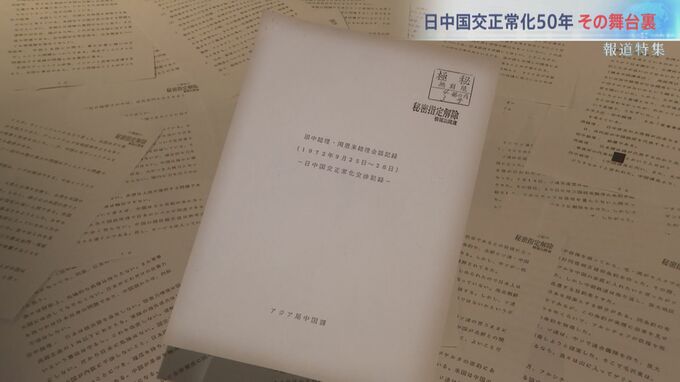 “極秘”と記された文書。50年前、日中国交正常化をめぐり田中角栄総理と中国の周恩来首相が、北京でどんな協議をしたのかがつぶさに記されている。
