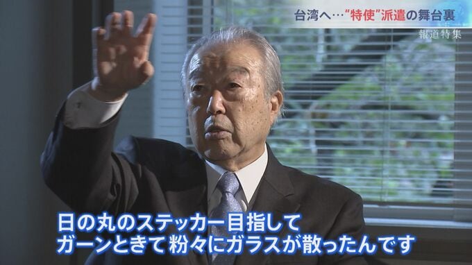 「(空港を)出ようと思ったら(車が)囲まれちゃった。日の丸のステッカーを目指してガーンときて、粉々にガラスが散ったんですよ」