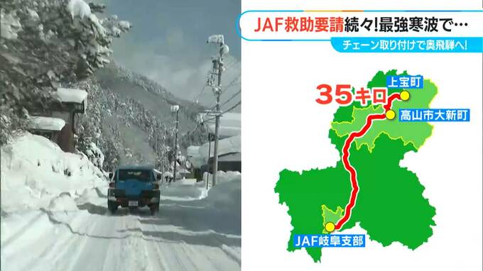 最強寒波が居座る中、取材班はJAF岐阜支部に密着。前回の取材では岐阜市から90キロほど離れた郡上市まで出動しましたが、今回はなんと岐阜市から130キロ離れた高山市からの救助要請。「岐阜県縦断」です。