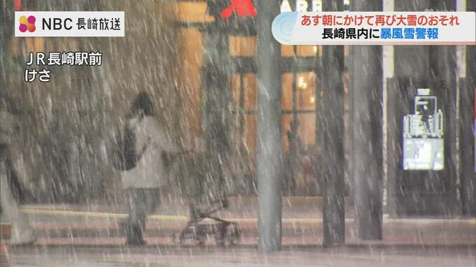 長崎県内では8日朝にかけて平地・山地ともに再び大雪となるおそれがあり、気象台が雪を伴った暴風への警戒を呼びかけています。7日朝のJR長崎駅前は雪は降ったり止んだりを繰り返していました。現在、県内の広い範…