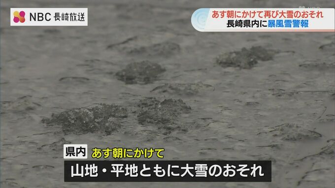 長崎県内では8日朝にかけて平地・山地ともに再び大雪となるおそれがあり、気象台が雪を伴った暴風への警戒を呼びかけています。