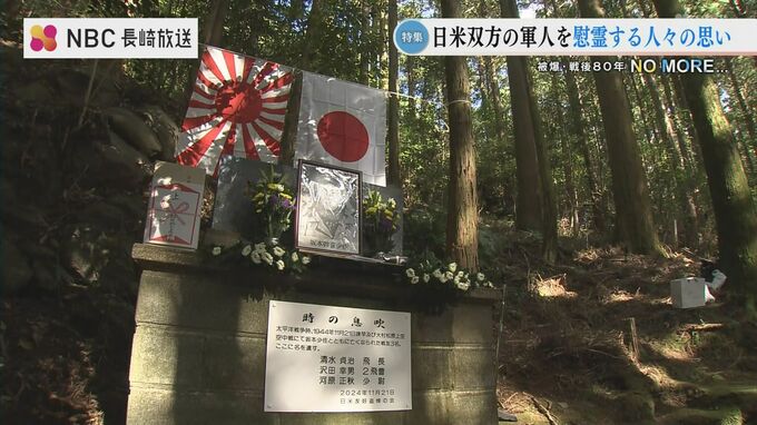 去年11月21日、市民や自衛隊、アメリカ海軍の関係者らが、諫早市高来町の山奥にひっそりと建つ慰霊碑を訪ねました。