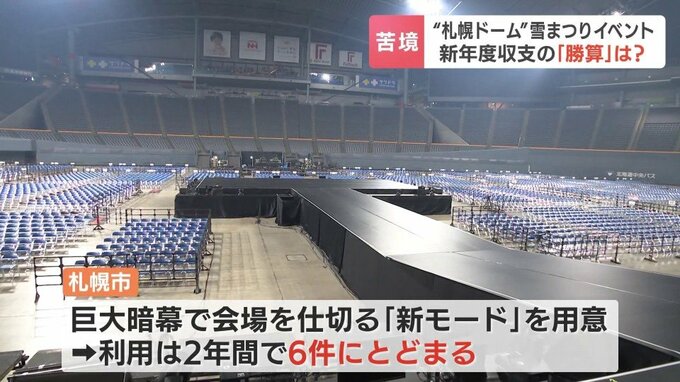 札幌市は、10億円を投じて巨大な暗幕で会場を仕切って利用できる「新モード」を用意しましたが、中規模コンサートの誘致が思うようにいかなかったこともあり、利用はこの2年間で6件にとどまっています。
