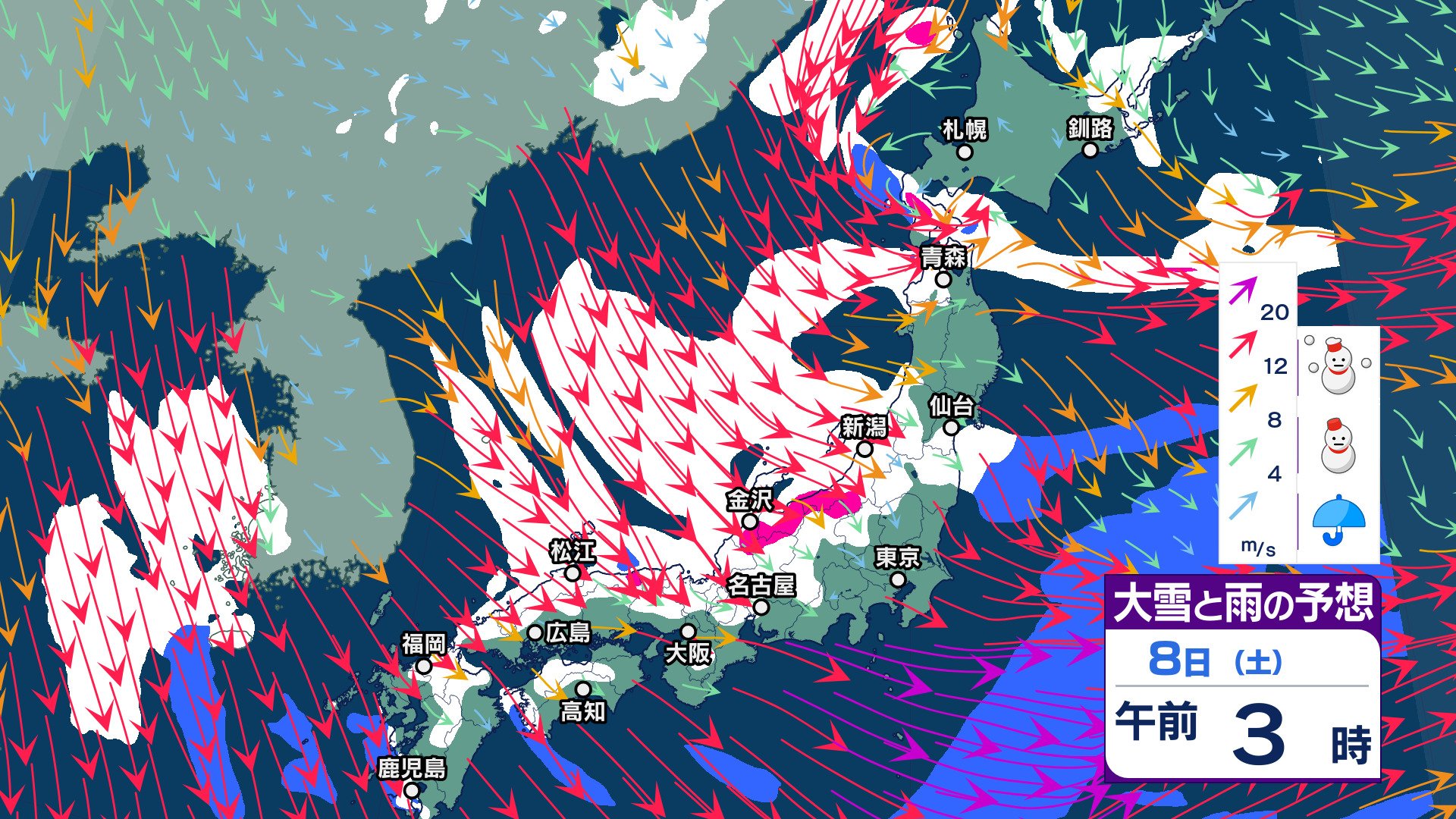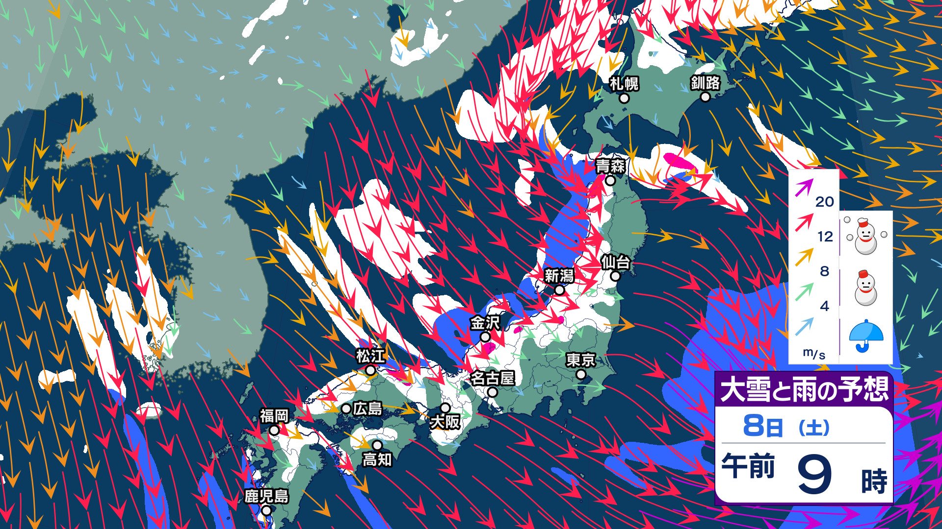 【交通障害に警戒】長野県と関東北部7日夜遅くから9日にかけて山沿いや山地を中心に大雪となる見込み【大雪と雨と風のシミュレーション】 チューリップテレビ 2025年2月7日(金) 21:07 国内 天気 8日(土)大雪と雨と風のシミュレーション
