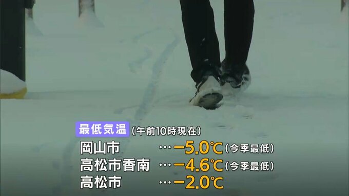 強い冬型の気圧配置の影響で中国地方沿いは昨夜(7日)から断続的に雪が降り、岡山香川では厳しい冷え込みとなりました。