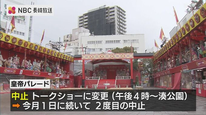 長崎市は、8日午後予定されていた皇帝パレードを、交通機関の運行状況を鑑みて中止し、トークショーに変更することを決定。