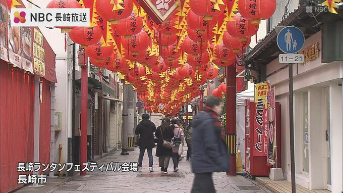 週末ということもあり、開催中の長崎ランタンフェスティバルの会場周辺には、午前中から観光客の姿が見られました。