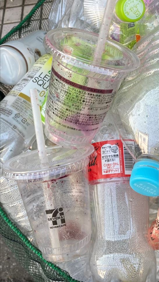そして、プラカップの出し方として「軽くゆすいでプラの日に出してくれると資源になります!」と説明。ここで写真のようにペットボトルと混ぜて出してしまうと、ペットボトル以外の「その他のごみ」として、資源に回されずに処理されてしまうとのこと。