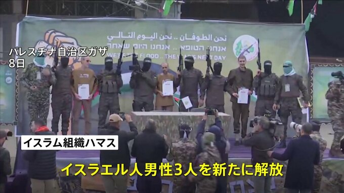 イスラム組織ハマスはパレスチナ自治区ガザでの停戦合意に基づき、5回目となる人質の解放を行いました。ハマスは8日、おととし10月イスラエルから連れ去った人質のうち、イスラエル人男性3人を新たに解放しました…