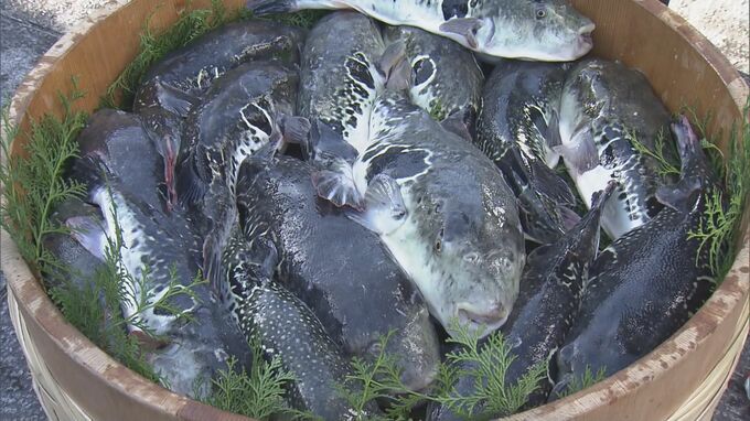 2月9日は語呂合わせで「フグの日」。三重県の伊勢神宮では、トラフグの奉納が行われました。伊勢神宮にお目見えしたのは、志摩市の安乗漁港で水揚げされた、「あのりふぐ」と呼ばれる重さ700グラム以上の「トラフ…