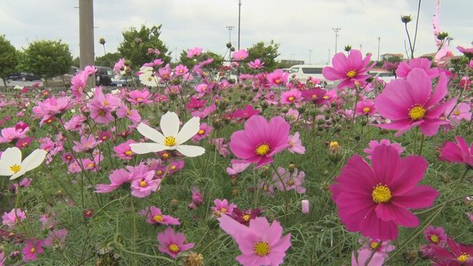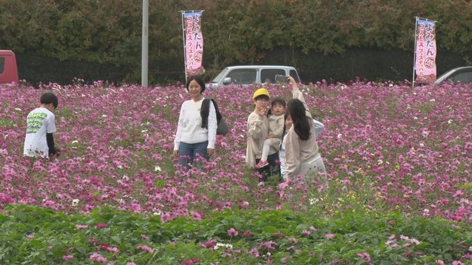 このコスモスは2月下旬頃まで見頃が続く見込みで、しばらくの間、地域を明るく彩ってくれそうです。
