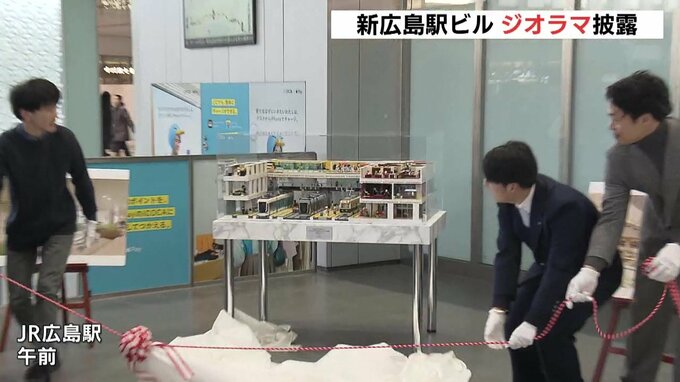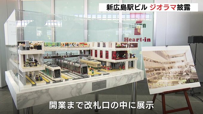 来月の新しい広島駅ビルのオープンを前に、ブロックで作られた中央空間のジオラマが披露されました。