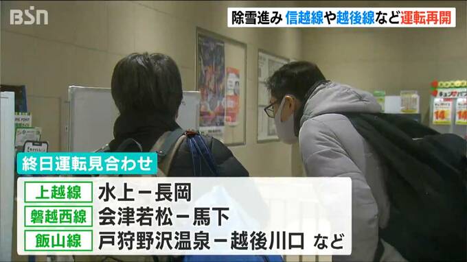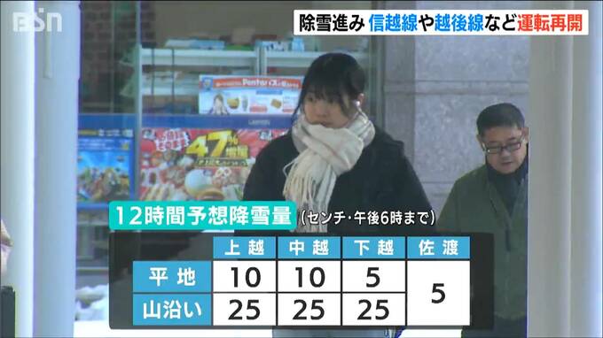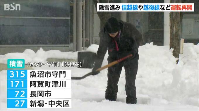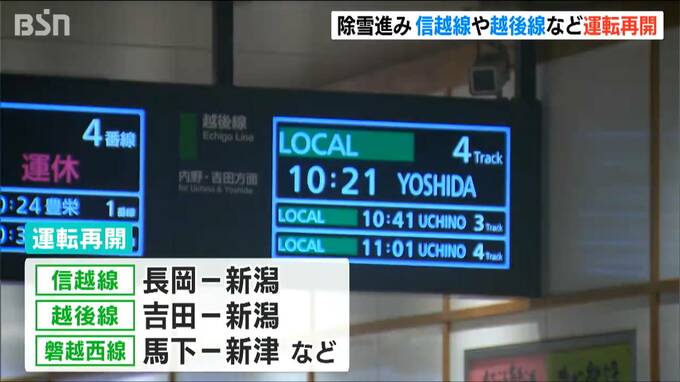 一方、交通機関では除雪作業が進み、徐々に運転再開となっています。JR東日本は9日午前9時以降、越後線や信越線の一部区間で除雪作業が終了したため運転を再開しました。上越線や飯山線などは終日運転見合わせとなっています。また、8日正午から通行止めとなっていた関越道六日町インターから群馬県の渋川伊香保インター間は9日午前10時に解除となりました。