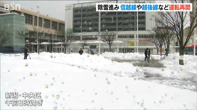 新潟県内は大雪のピークが過ぎ一部の交通機関が徐々に運転を再開しています。ただ、強い冬型の気圧配置は続いていて今夜遅くにかけて雪を伴った強風に注意が必要です。
