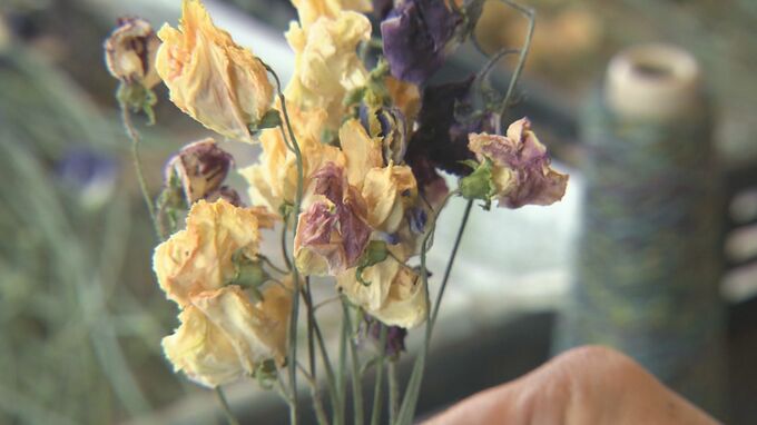 別府市のフラワーショップ「華つねまつ」。店を切り盛りする恒松さん夫婦は、およそ3年前からスイートピーのドライフラワーを販売しています。
