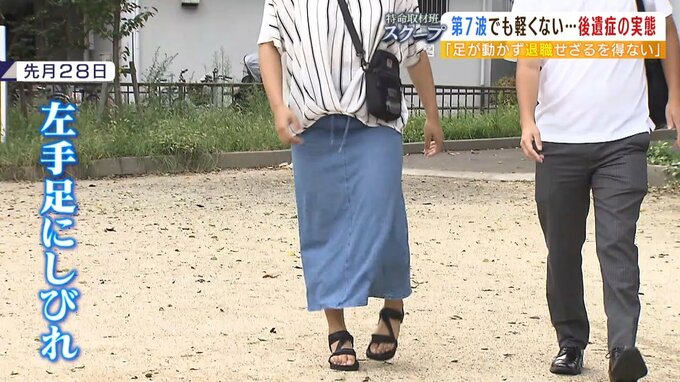 「この足になってから階段の上り下りができなくて。左の足は全く床につけられない状況。つけてしまうと痛くなってしまうので。“この先歩けなくなるんじゃないか”という怖さがある」