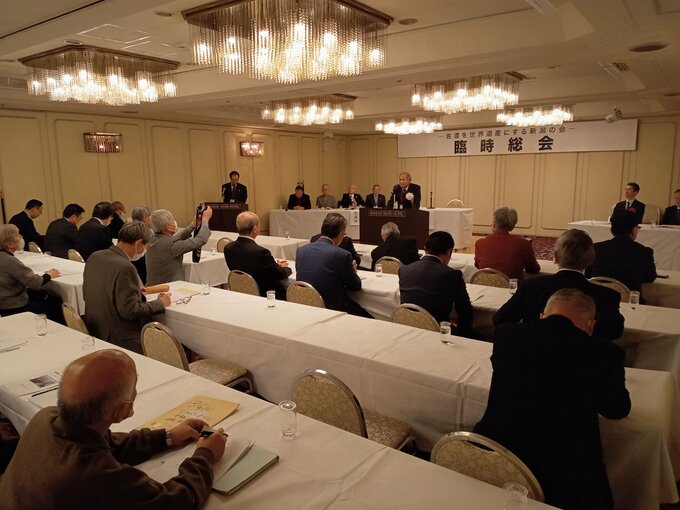 佐渡金山の世界文化遺産登録を後押ししてきた新潟の市民団体が今年度末をもって解散することを決め、会員を集めた臨時総会でこれまでの感謝の思いを伝えました。
