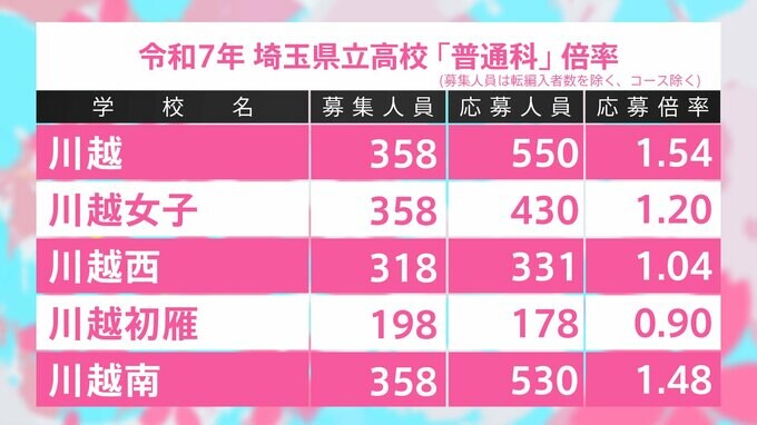 埼玉県立高校入試2025 全日制普通科 志願倍率は大宮1.64倍、浦和1.55倍、川越1.54倍に【令和7年度高校受験】 TBSテレビ 2025年2月10日(月) 17:00 国内 学校別の一覧 川越1.54倍、川越南1.48倍