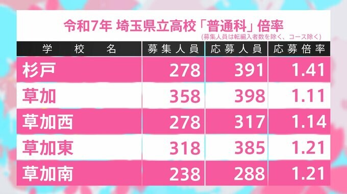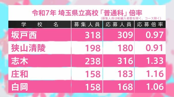 埼玉県立高校入試2025 全日制普通科 志願倍率は大宮1.64倍、浦和1.55倍、川越1.54倍に【令和7年度高校受験】 TBSテレビ 2025年2月10日(月) 17:00 国内 学校別の一覧 杉戸1.41倍、志木1.33倍