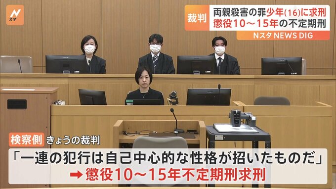 去年2月、神奈川県相模原市の自宅で両親を殺害した罪などに問われている16歳の長男の裁判。きょう、検察側は懲役10年以上15年以下の不定期刑を求刑しました。去年2月、相模原市のマンションで50代の夫婦が死亡して…