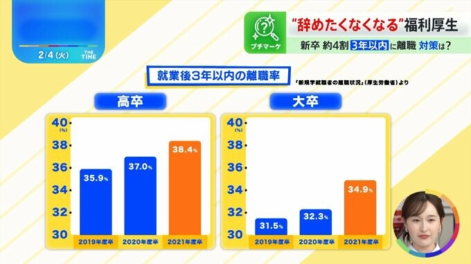 厚生労働省によると、新卒者の「就職後3年以内の離職率」は年々増加し、