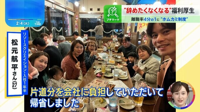 さらに、帰省ラッシュを避けられるよう一般的な企業より“仕事納めが1週間以上早め”。タイ旅行に行った社員は「ピーク時に比べると1/4の値段で行けて助かった」とホクホクです。