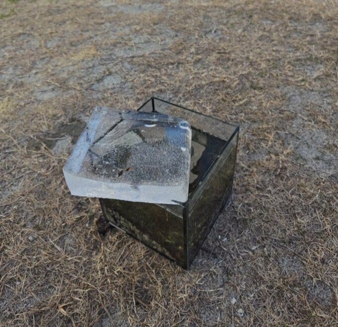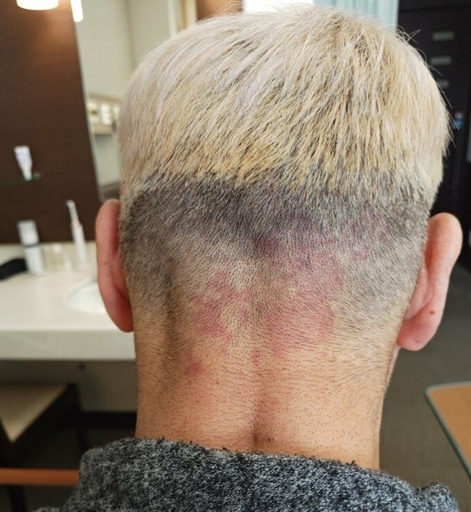 オール巨人さんは「6回目の…手術!」とのタイトルで、冒頭「大寒波襲来で被害に遭われた皆様にはお見舞申し上げます!」と綴った上で「家の庭の小鳥用の水も見事に凍ってて…寒いですね…」「僕の後頭部も寒さを実体感しています…」と、庭の氷の写真とともに自身の後頭部を刈り上げた写真を公開しました。