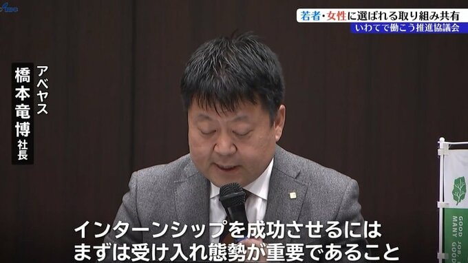 地元中小企業の経営コンサルティングに取り組む「アベヤス」の橋本竜博社長はインターンシップの学生に営業の同行や提案資料作成などの体験が2期連続の採用につながった事例を紹介しました。