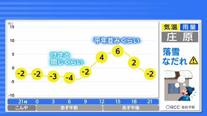 きょう10日(月)の広島県内は、寒波のピークは過ぎましたが、引き続き風が冷たく寒い一日となりました。特に朝晩の冷え込みは厳しく、最低気温は大朝で-8.6℃ 広島市中区で-1.1℃でした。