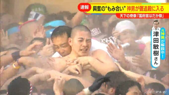 今年の神男は、3歳の時から祭りに参加してきた“祭り三兄弟”の次男・加藤稜大さん(26)です。厄を背負った神男に触れようと、下帯姿の男たちが激しくぶつかりました。