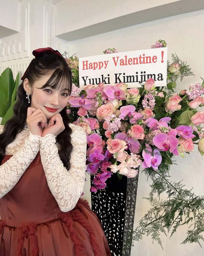 投稿された写真では、君島憂樹さんが「Happy Valentine! Yuuki Kimijima」と記されたボードと、色とりどりの花をバックに微笑みを浮かべる様子などが見て取れます。