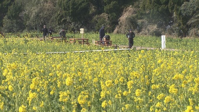 田原市の「伊良湖菜の花ガーデン」。一面に黄色く染まった菜の花が見頃を迎え、春の訪れを楽しませてくれます。