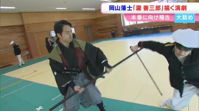 明治時代、命をかけて日本の外交問題を解決したとされる備前岡山藩の武士、瀧善三郎。その功績を伝える演劇が今月(2月)22日・23日に岡山市で上演されます。本番に向け、きょう(11日)出演者らが通し稽古を行いまし…