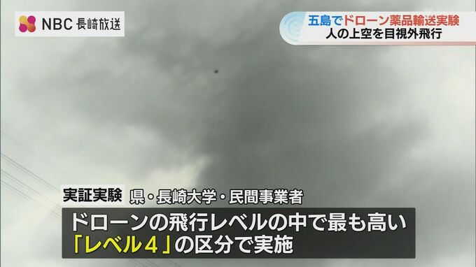 長崎県や長崎大学、民間事業者が行ったきのうの実証実験は、ドローンの飛行レベルの中で最も高い「レベル4」の区分で行われました。