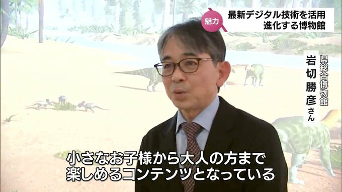 (県総合博物館・岩切勝彦さん)「日本神話の世界、それから白亜紀の恐竜世界、そして海中世界探訪といった、生き物・歴史・文化に関する映像コンテンツがあり、小さなお子様から大人の方まで楽しめるコンテンツとなっている」