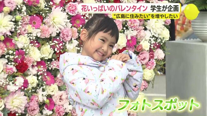 「若者の広島定着」をコンセプトに、大学生が企画した花いっぱいのバレンタインイベントが、広島市で開かれました。イベントは、安田女子大学公共経営学科の有志が企画しました。会場には花のフォトスポットが設け…