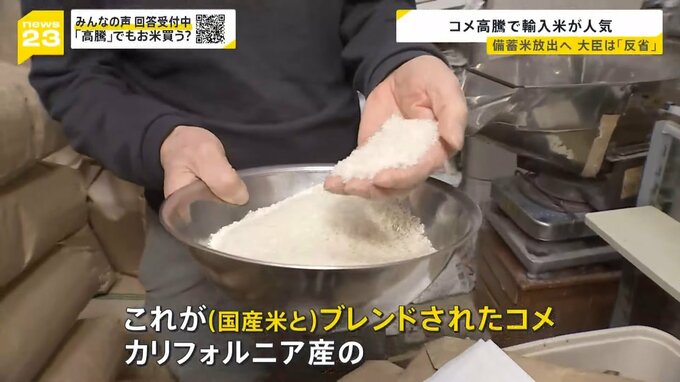 こちらでは2024年の夏ごろから、アメリカ産の米と国産米を混ぜた「ブレンド米」の販売を開始。価格は国産米の半分ほどで、飲食店を中心に注文が相次いでいます。