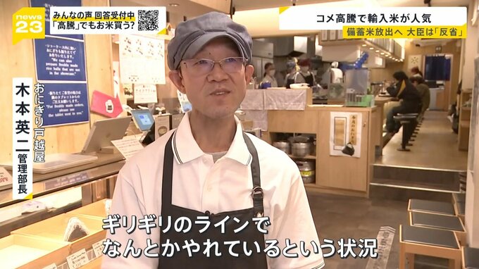 「(コメの値段が)上がり続けたらマジで困りますね。『これ以上(おにぎりの値段が)上がるともう来ないよ』という厳しい意見がある」