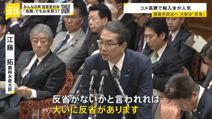 「今の状況は異常な状態なので、これを何とかしたいという思いもあって、備蓄米の活用を検討した次第でございます」