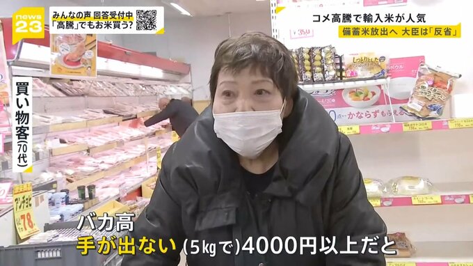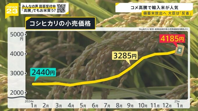 「新米の時期を超えても、こう(高いまま)だから、消費者としては対策のしようもなくなってきている」