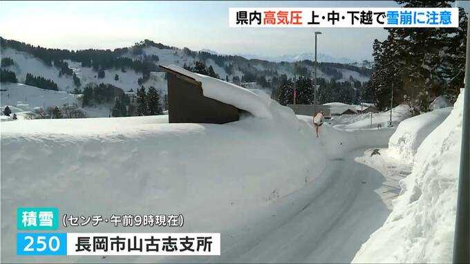 山沿いでは各地で積雪が増えていて、津南町や魚沼市守門などで3メートルを超えています。新潟地方気象台は上・中・下越ではなだれに注意するよう呼び掛けています。
