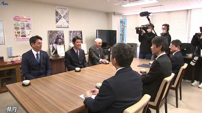 3月の春のセンバツ甲子園に出場する花巻東高校野球部の監督やキャプテンが、岩手県庁を訪れ、大会での活躍を誓いました。