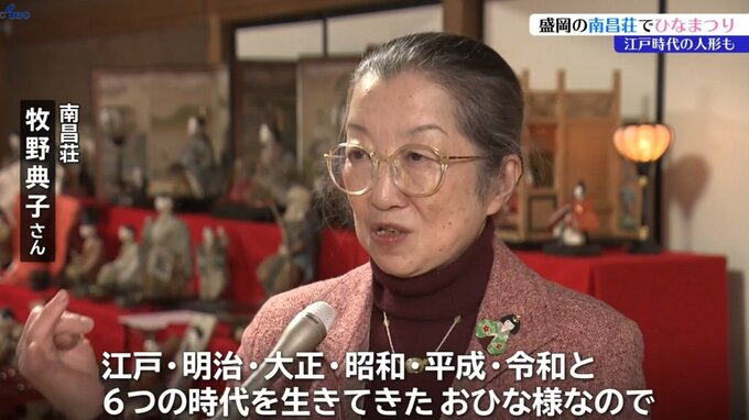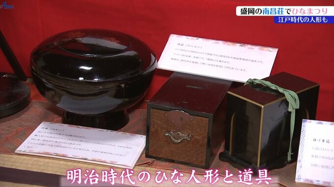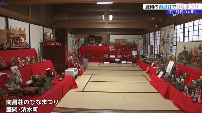 3月3日の桃の節句を前に、盛岡市の南昌荘で恒例のひな人形の展示が行われています。会場には今回初めて展示される江戸時代の人形などが並んでいます。
