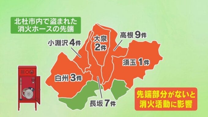北杜市内では去年春、およそ90本の消火ホース先端の金属製器具がなくなっていて、犯行グループは盗難した金属を売却しているとみられます。