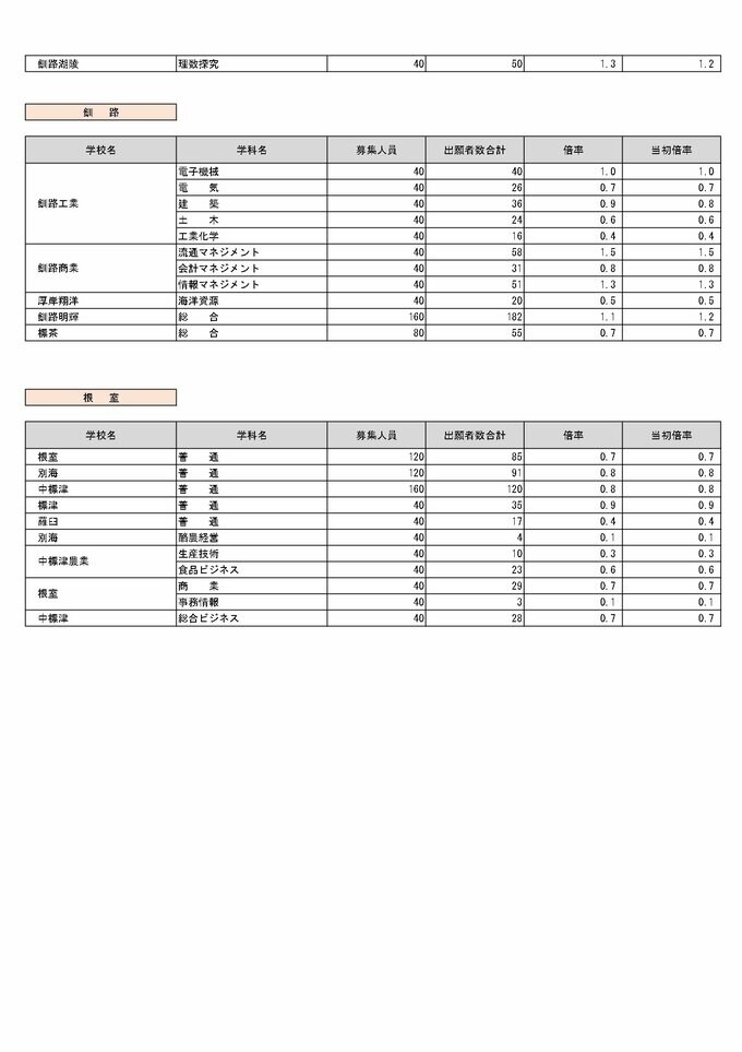 【公立高校入試】出願変更後の最新状況 全日制普通で札幌平岸1.8倍が最高倍率 札幌東と札幌国際情報が1.6倍、市立札幌旭丘と苫小牧東1.5倍、札幌南は1.3倍、札幌西1.4倍、札幌北1.2倍(全日・定時全校一覧) 北海道放送 2025年2月12日(水) 15:43 国内 ◇釧路・根室